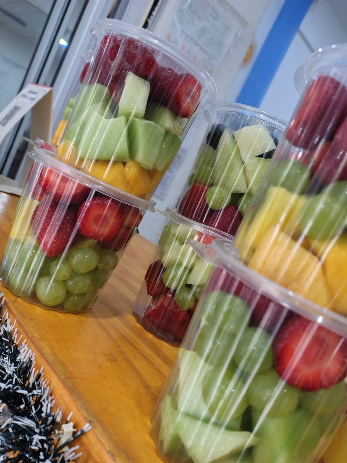 Puede traer: melón, sandía, frutilla, ananá uva, durazno, mango y arándanos.